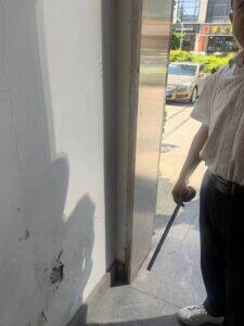 次入口墙面因长时间的梅雨期 ,墙面出现涂料脱落,星廷物业立马对次入口墙面进行铺设墙砖的改造,改善了出入口的整洁及美观度。